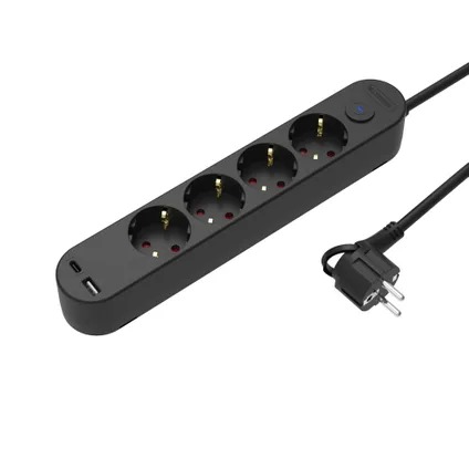 KOPPLA 230V. verdeeldoos (4-voudig, 2 x USB-poort, 3m. kabel met randaarde)